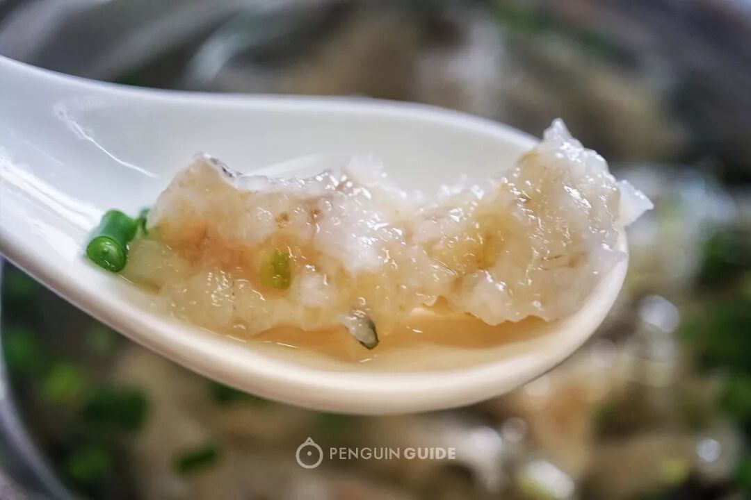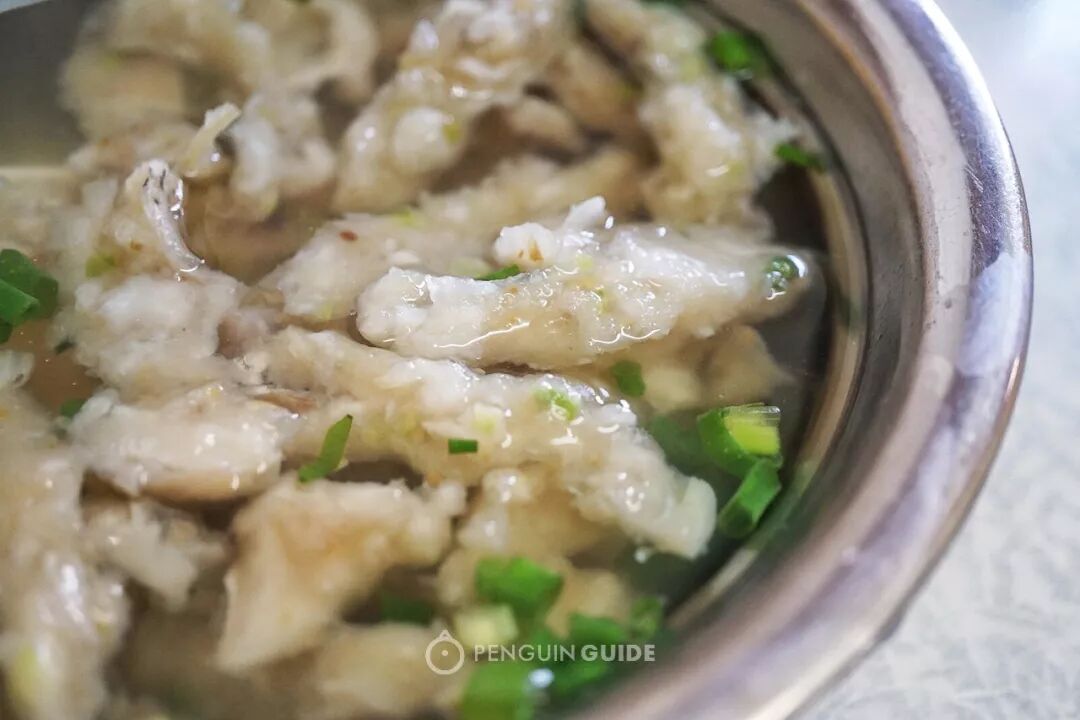 敲鱼薄如蝉翼,是鱼肉加淀粉后经过二十几道敲打成的薄片,切条而成。一般还会在汤里加入青菜、萝卜丝和香菇片,可以说是温州人最爱的一碗汤了。