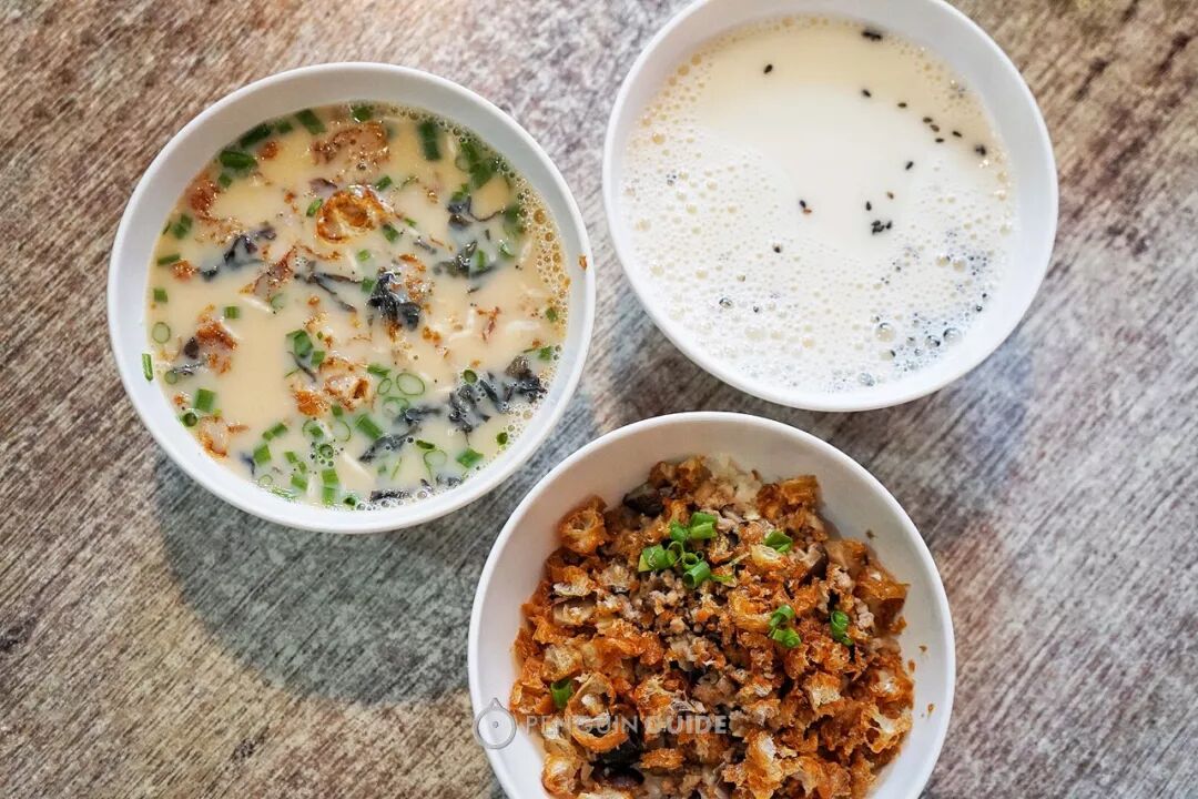 豆浆有咸甜两种,咸豆浆里会放油条紫菜虾皮和葱花,而甜豆浆里会撒黑芝麻,有任何忌口,记得提前告诉老板。