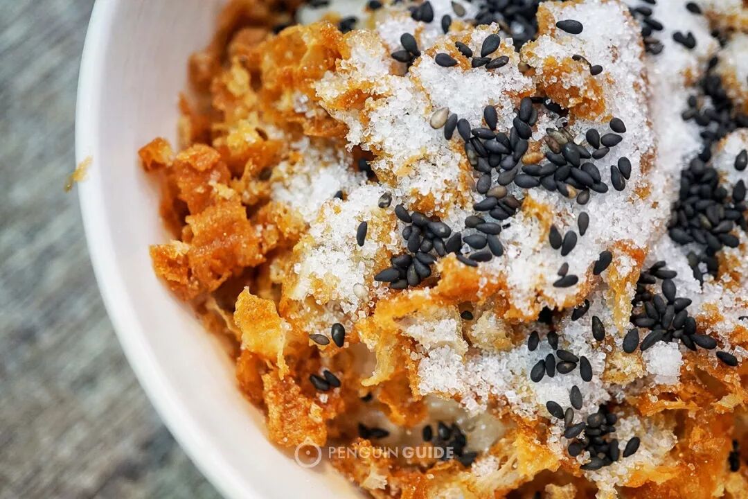 炸得金脆的油条,均匀撒上白糖和黑芝麻,混着糯米大口吃,没有人能拒绝这样的美味。