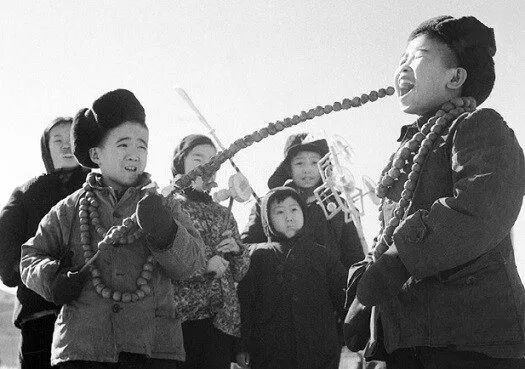 孩子们裹着肥厚棉袄,穿过灰色砖瓦的胡同,手里举一串冰糖葫芦,冰糖的晶亮里透出山楂的红,把一条街的色调都点染得明媚。这还不够,得来一场雪,地上、屋上、枝丫上都是白茫茫一片,专为了把雪地里那一串红果,衬得更加甜美娇憨。