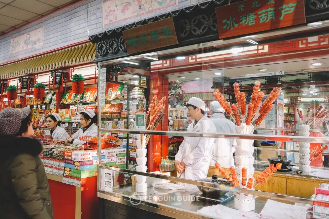 纪昀(纪晓岚)推崇的是不老泉,以选料严苛著称。还有一种特色糖葫芦,在切开的红果里填入豆沙、山药泥、核桃屑,外部浅浅裹上黑豆沙,撒上瓜子仁,再蘸冰糖汁。