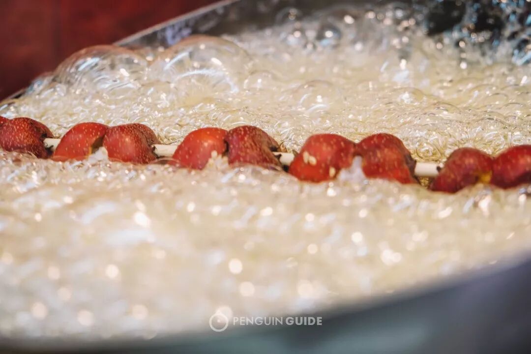 据说旧时的冰糖葫芦讲究“糖不粘土”,就算灰土撒在糖壳上,也能一吹即净。这也许有些夸张,但糖衣不粘牙,的确是判断糖葫芦的重要标准。而这不仅仅取决于原料,也要考验师傅的手艺。