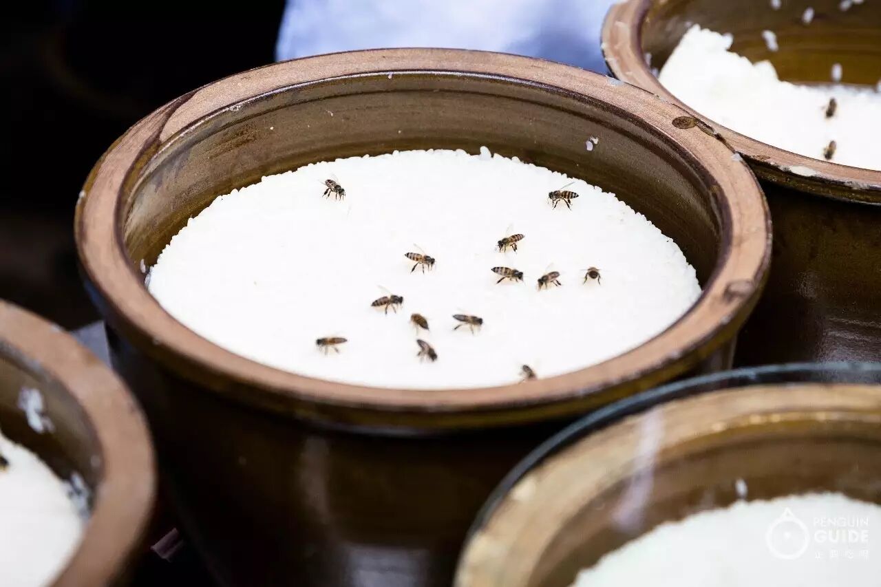 甜白酒和甜酒酿类似,但米饭颗粒更紧实,汁水少而特别甜。这家小摊离会泽黑山羊很近,用大缸装甜白酒铺在路边卖,没有铺面不能堂食,不过生意照样好,蜜蜂飞舞香气四溢,甚至有人来连缸端走。