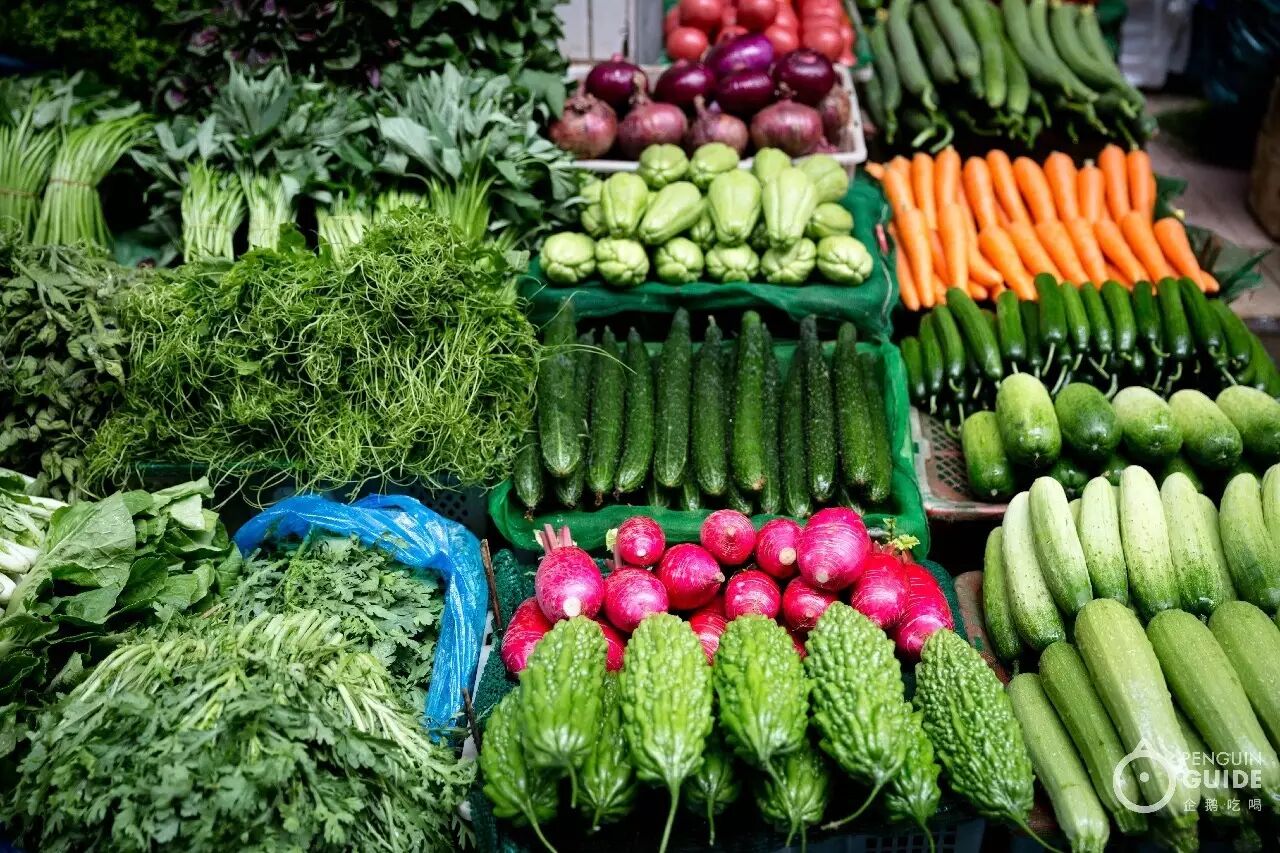 新鲜时蔬五颜六色商贩们不用费心排列,把它们随意堆在框里,就有了全食超市里的昂贵精致感。鲜花也穿插在蔬菜中一起售卖,美而不贵的生活小点缀俯首可得。