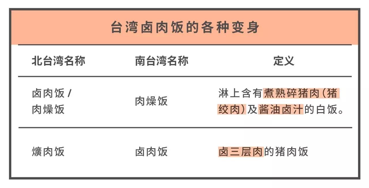 在台湾找一碗卤肉饭,很快你就会遇到第一个困难——在满大街的招牌上,会随机出现这些字样:“滷肉飯”、“鹵肉飯”、“魯肉飯”、“肉燥飯”、“爌肉飯”、“焢肉飯”。即使你看得懂繁体字,也难免会头疼: