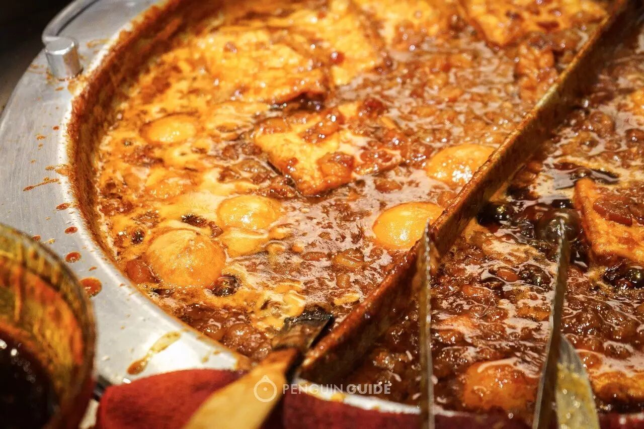 白菜卤是各家基本班底,在卤锅中将大白菜焖煮软烂,再用扁鱼干或小虾米提香,爽口解腻,有些店家还会配上胡萝卜丝和香菇,营养又好看。卤蛋、卤豆腐和卤肉则同在一锅,日夜翻腾,蛋香豆香都沾染了卤肉的鲜气。