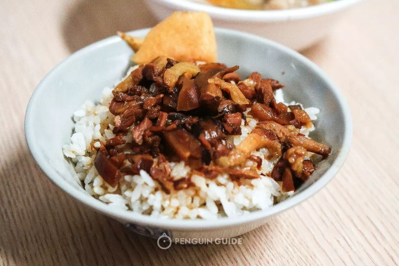在台北吃卤肉饭,选择非常多,高档台菜餐厅精致味美,连锁餐厅水准稳定,而无数街角小店也令人惊艳。台北的卤肉饭较咸香,卤肉多切成长条状,有时会加入香菇条一起卤煮。卤肉多配着酸菜、黄萝卜等小菜,清脆又解腻。