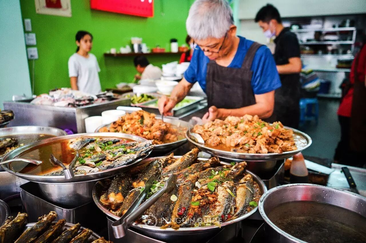 淋上肉燥前,先洒一把香菜末,肥肉入口即化,可惜碎米太多,没有粒粒分明的舒爽感,但卤汁芳香的油脂味,仍然齿颊留香,配上摊前几样清爽的家常小菜、猪肠、香肠,各式鱼类料理,都是当日上市场采买的时鲜,豪迈地点上几样,人均也不到一百元,性价比不要太高!
