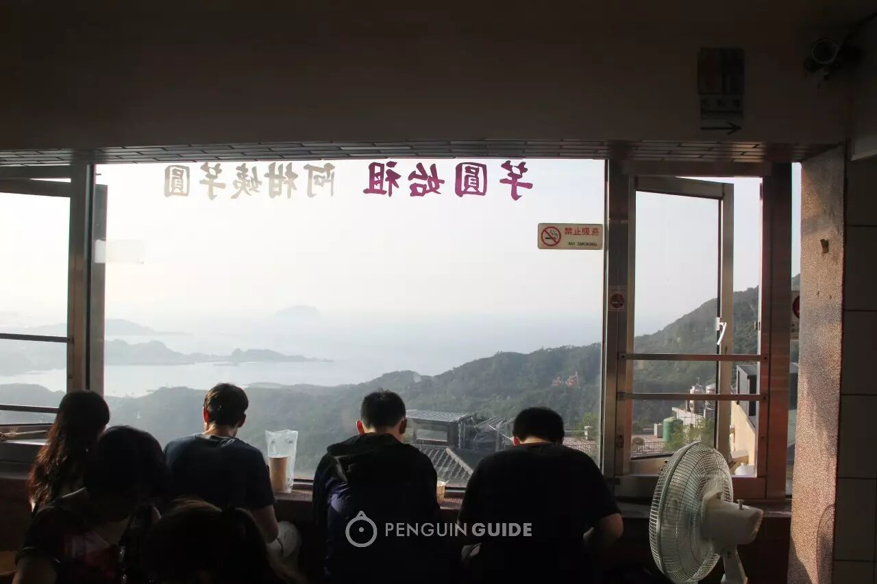 这家芋圆店位于九份老街的深处,在经过崎岖蜿蜒的街道后,还得顺着陡峭的石阶努力向上,爬到九份国小的门口,虽然辛苦但却值得!因为这里的芋圆冰真的相当好吃!来这里的客人,大多会双手捧着冰凉的芋圆,坐到九份国小前面的石阶上一边看山看海,一边享用,惬意无比。