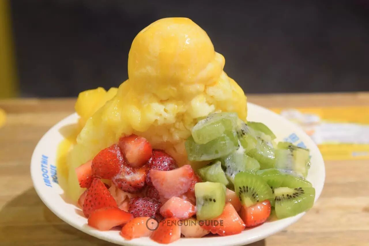 思慕昔的本馆,一共有两层楼,客人非常多。而这里冰品都是以雪花冰作为基底,上面搭配着各式新鲜水果,不但可口,外观也很迷人。