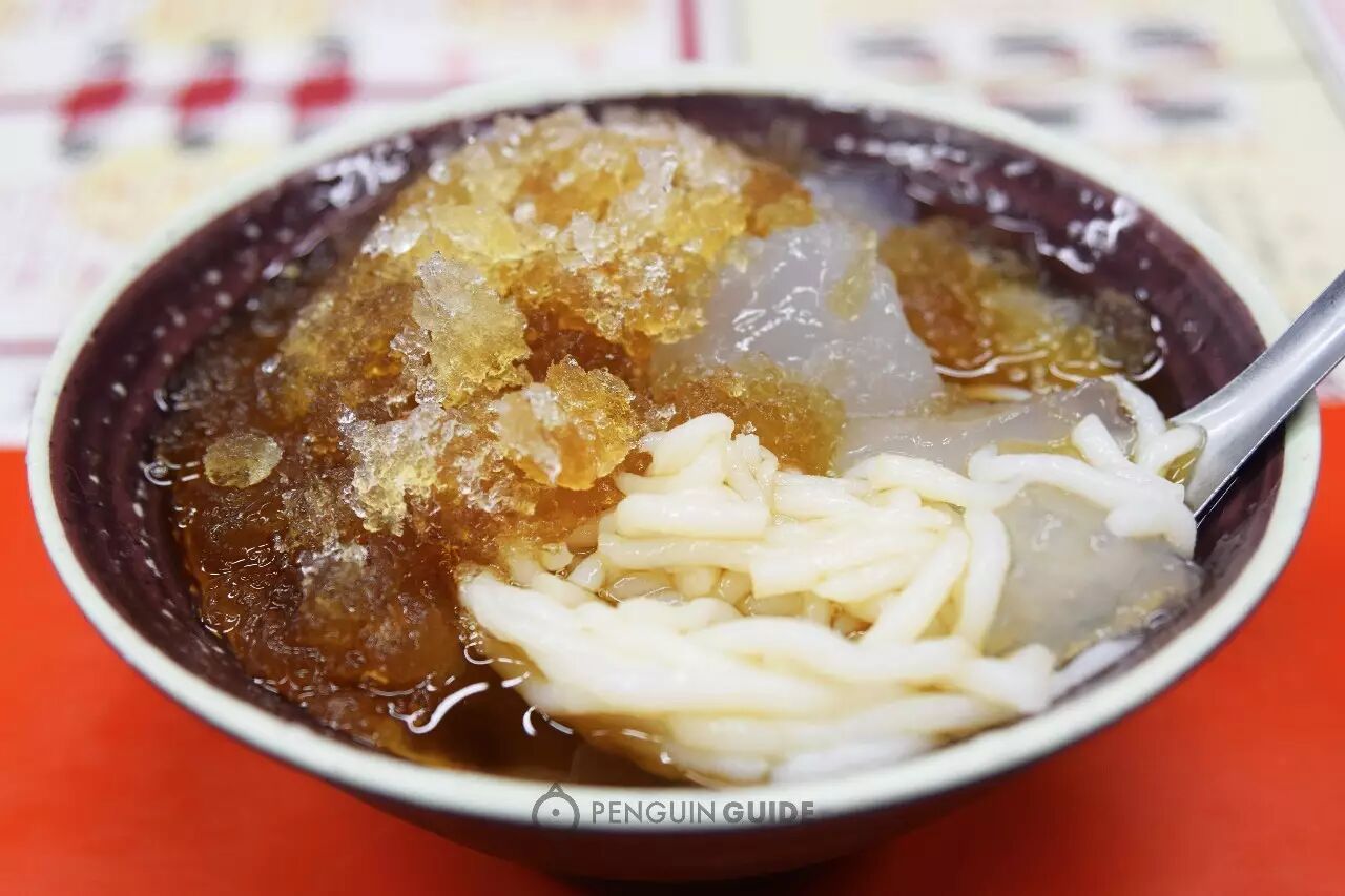 作为配料主角的米苔目白软香嫩,在保有一定嚼劲的同时,也保持着过人的弹性,吃起来香气十足,也颇具饱足感。半透明的粉粿,本身不带甜味,但靠着绝佳口感,在整碗冰中毫不失色。