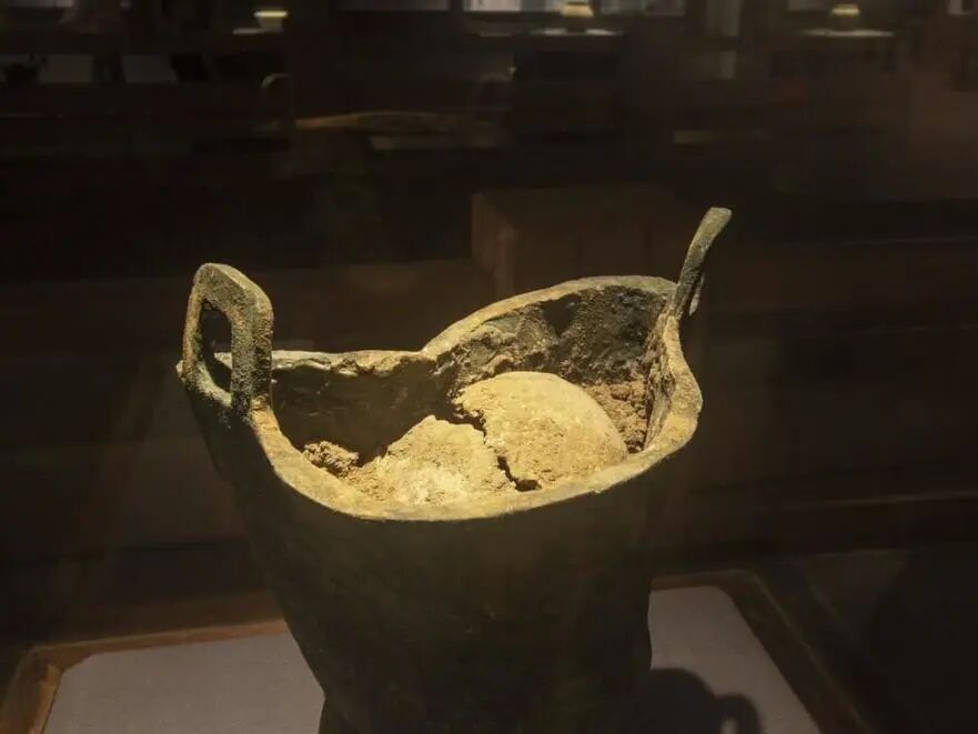 考古学家们将青铜甗中的人头取出,一经查看就发现了问题。这人头颈部有刀斧砍削的锯齿状断痕,说明确实是被砍掉脑袋的,不过,这头骨呈现非常明显的灰黑色,与一般情况下自然保存的灰黄色大不相同。经过化验,果然,这人头中的钙质流失严重,是经过烹煮的。这就证明,“意外滚落”说,显然不成立。