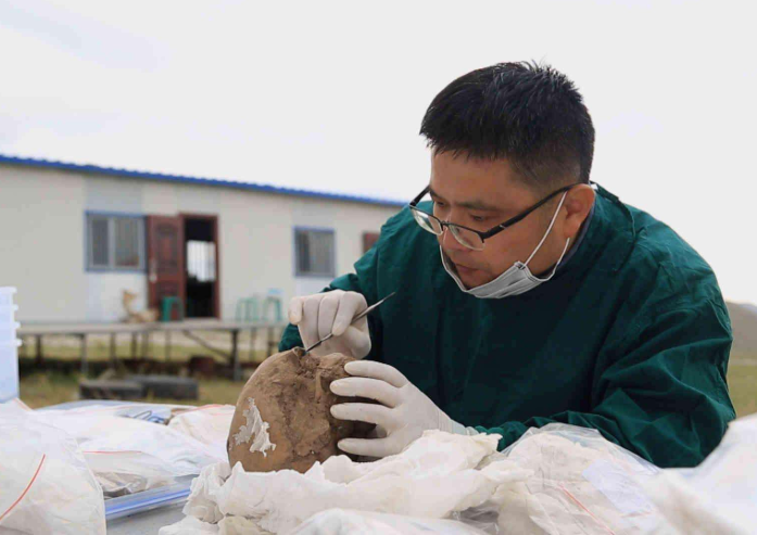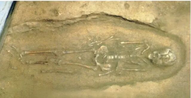 那时,编号为M21的墓穴突然冒出一处白点,于是,考古队小心翼翼将周边泥土拨开,渐渐的,一具人类遗骸出现在大家面前。