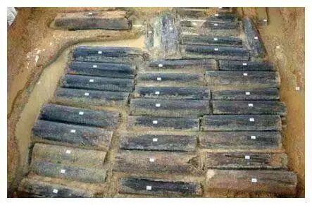 但稍加观察,人们就发现,这47口棺材中存在明显的区别。相比位于墓穴东南的配有专门棺床的豪华棺椁,其余46具只有棺没有椁,而且都是用廉价的杉木打造。这说明,这46口棺材只是随葬。