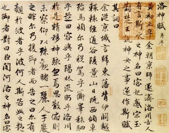 赵孟頫的传世书迹较多,有《洛神赋》《道德经》《玄妙观重修三门记》独孤本《兰亭十一跋》等。传世画迹有《重江叠嶂图》卷、《鹊华秋色》卷,《秋郊饮马》卷等。而这幅《水村图》珍贵之处还在于,大批文人在卷后留下了五十五段题跋,光看《水村图》中这些人的书法诗文,就是一部活生生的元、明、清艺术史。