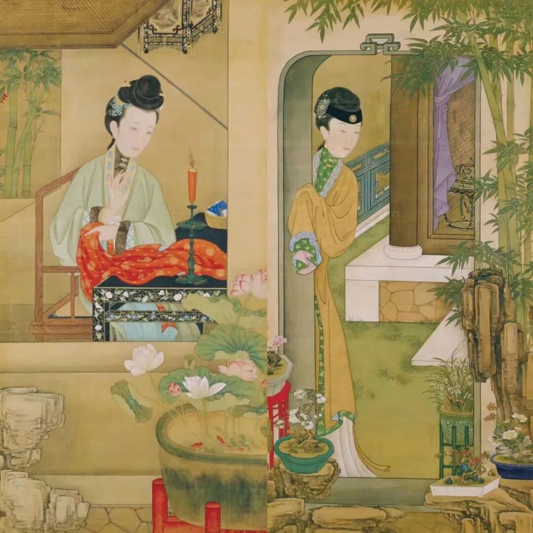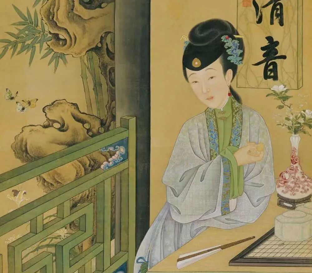 朱家湾先生从清代内务府档案中发现了一条记载,记录了雍正十年从圆明园深柳读书堂围屏上“拆下美人绢画十二张”。清宫档案把它们称为“美人绢画”,已经证实了她们绝对不是雍正的妃子。为什么这么说呢?因为根据惯例,不能这么草率直白地称呼皇帝妃子画像为“美人画”,应当记为“某妃喜容”“某嫔喜容”。如果贸然地称为“美人”,大不敬的罪名许就跑不了了。