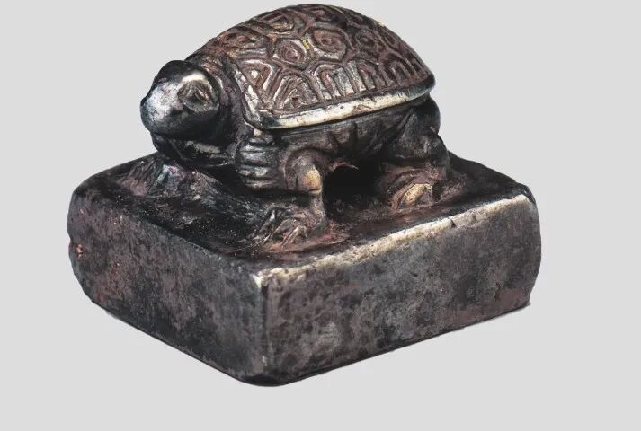 这枚印是刘注的私印,正方形,边长 2.1 厘米,通高 1.7 厘米,重约 39 克。是一只四足挺立、昂首爬行的小龟形象。为什么用龟做钮呢 ?今天一说乌龟,好像是骂人的,不是什么好词,但在古代,却不是这样的,麒麟、凤凰、龟、龙都是灵物。四大神兽“青龙、白虎、朱雀、玄武”中玄武就是龟和蛇。龟还是长寿的象征。另外,龟比较圆润,也适合做印章的钮。这枚小小的印章,就确认了龟山汉墓的主人是第六代楚王一一刘注和他的夫人。也是因为这枚印,让龟山汉墓成为徐州地区众多楚王墓中唯一能确定主人的墓。