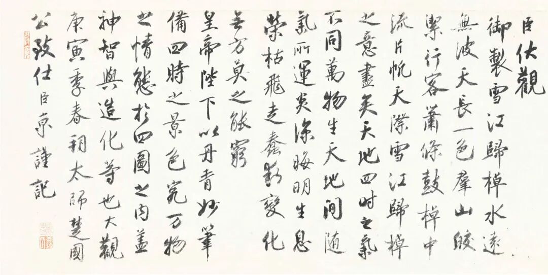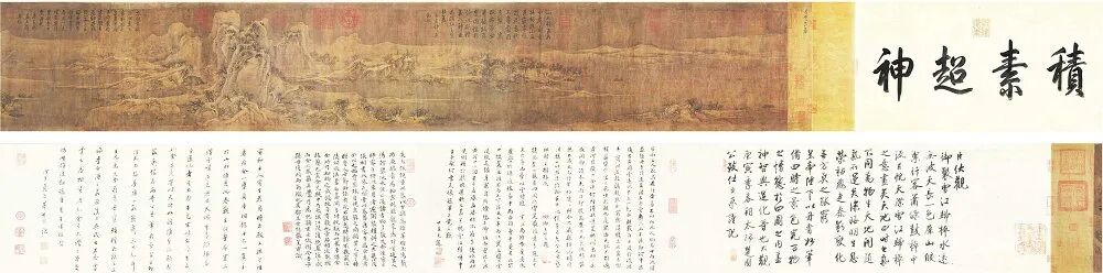 宋徽宗传世山水最少,本人也不擅长山水,但还是有人送上溢美之词,比如奸臣蔡京,他写了一段行书长跋赞美自己这个上司,虽然肉麻,不过确实言辞优美,文采飞扬。