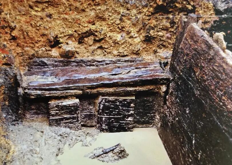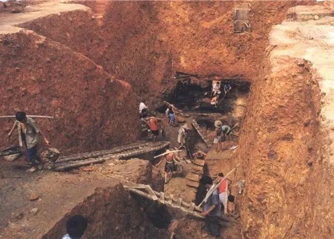 原来,在平整了地块后,工程队接着开挖建筑基础沉井,结果在挖井的过程中挖出了白膏泥、木炭和木屑。有经验的工人马上意识到:看来这风水宝地,早就被人看中了。