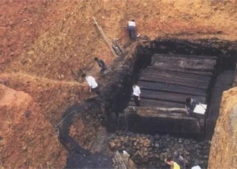 等到人们用“大揭顶”的方式让古墓全部暴露出来后,人们发现,墓主人的棺椁壁板累成一处,严重变形,其中的墓主人的尸骸当然也腐朽到不剩什么了。