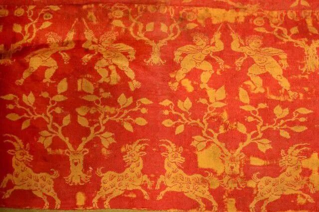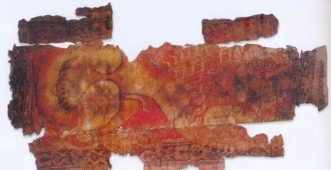 此外,就是墓主人身穿的天价毛衣,这件毛衣被命名为红地对人兽树纹双面罽袍,它保存完好,曾被列入“中国禁止出国(境)展览文物名录”。