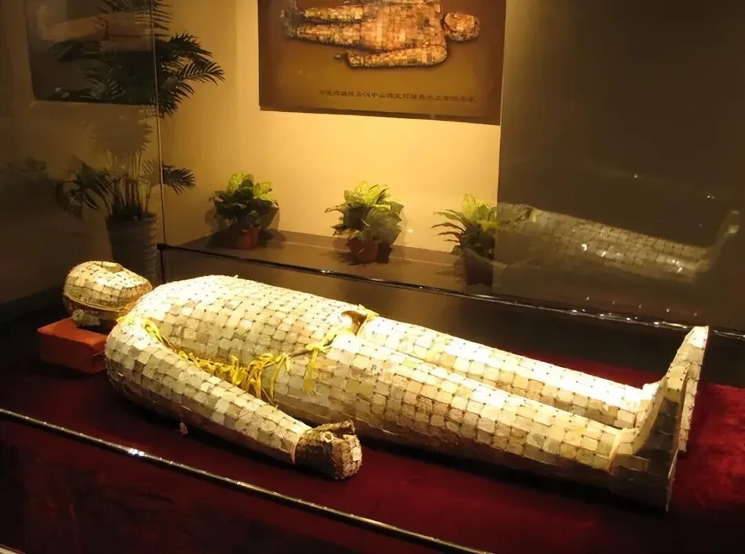 这由“玉片”编缀而成的席子排布在棺材里,上面还有闪闪发光的金箔,这席子与棺底同宽,更加衬托得墓主人贵不可言。虽然经过化验,这玉片实际上是铅钡玻璃,但这张席子,足以让考古队陷入了巨大的震惊中——这墓主人的身份,一定不只是县令这么简单。