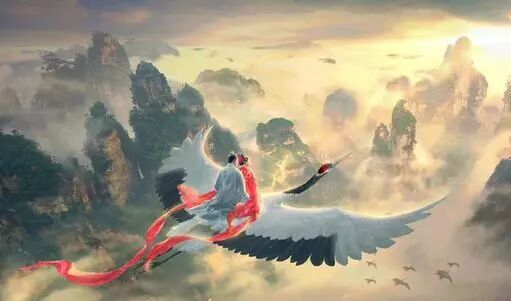 将羽衣与骑鹤飞升的典故相结合,披拂仙鹤的羽毛飞向永生,就成了修道之人的终极梦想。但一件羽衣实在太难得,于是,人们退而求其次,直接将仙鹤的图样织绣在衣服上,这样,鹤氅就诞生了。