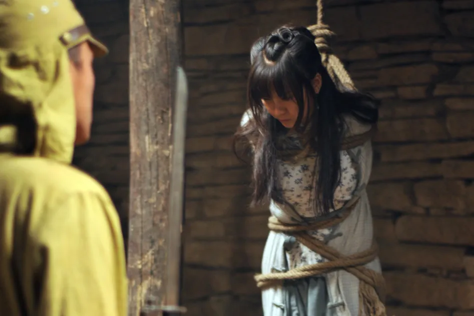 但接下来,日本人一个接一个地把侵犯了郝改英,整整一夜,郝改英都是在日本人的嚎叫声中度过的。郝改英生不如死,但却不甘心就这样死去,因为她知道,在据点的哪一个地方,丈夫也在挨打受苦。果然如她所想,天亮之后,郝改英就被拉出了房间,循着惨叫一看,郝改英就看见了自己遍体鳞伤的丈夫。他们把郝改英推到丈夫身边,问:你丈夫是干什么的?郝改英说:是老百姓。一个日本兵立刻就在郝改英的脸上打了一巴掌,恶狠狠地说:你要是不说老实话,就叫你人头落地。“你丈夫是不是为八路军做事?”郝改英只说不知道,日本人就越发怒气冲冲,甩起鞭子丈夫身上用皮鞭抽打,又用棒子打。最后又被吊在一棵树上打,衣服都被打飞了。鲜血从身上流下来,流到地上,聚成一个又一个的小血窝……