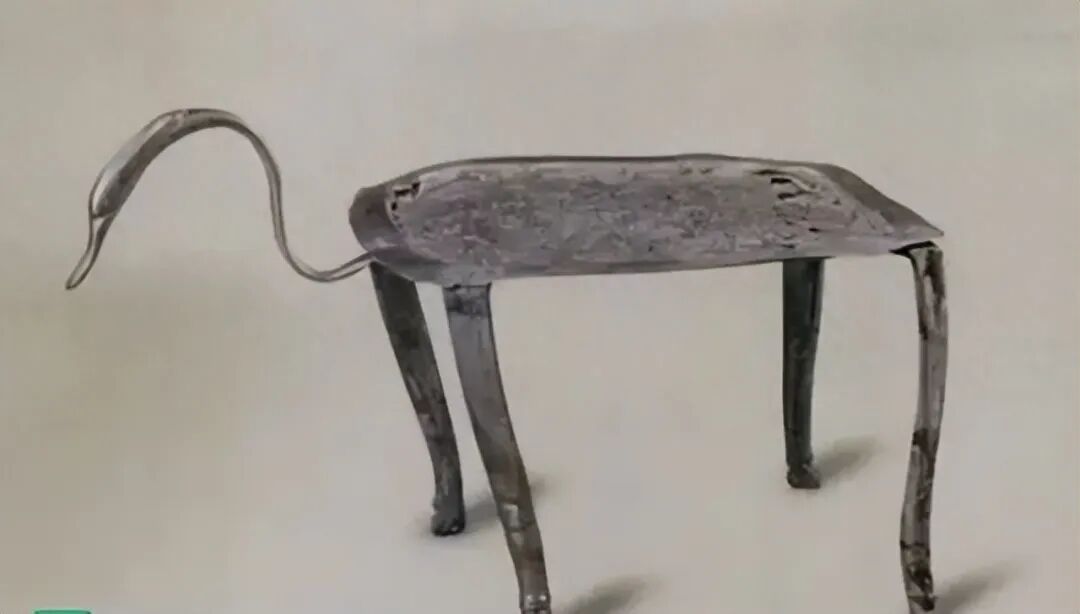 此外,人们还发现了巴掌大小的“银质桌子”,四个桌脚形似兽蹄,桌侧低垂的鹤首,这小巧的桌子,正是一件《茶经》中所记载的炙茶茶笼。与之配套的,还有一支手柄极长的银制茶铛。在手柄上人们发现了五个字——"四两二分宅",也就是"四两二分"是勺子的容量。