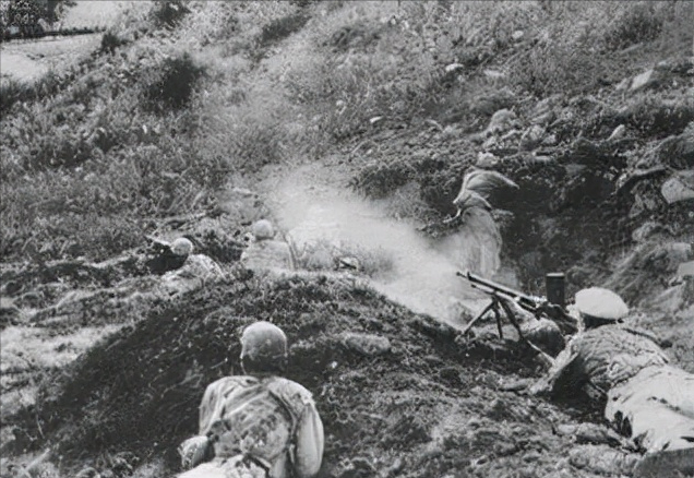 346高地北侧,有一处无名高地,139师417团2连在此驻守,虽然对方是威名在外的美骑兵八团,但在敌人猛烈的炮火覆盖下,志愿军苦战多日,付出了巨大的伤亡代价,却死死的咬住了对方的脚步,没让对方占了便宜。激战多日,竟然未攻占这一处无名高地,美国大兵脸面无光,于是集结了新的连队,在炮火的掩护下,发起了冲锋。这一次,美国大兵们竟然没有遇到激烈的抵抗,因为这几天的激战中,志愿军伤亡大半,阵地上能继续战斗的战士寥寥无几,只有一个机枪组和3名战士拼死抵抗。美军已潮水一样向高地袭来,这时,在志愿军的阵地上,突然爆发了一声怒吼:“现在都听我指挥,跟鬼子拼了。”他捡起牺牲战友的轮盘枪,向敌人发射起愤怒的子弹。