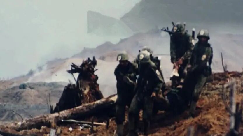 1986年10月14日,南疆战场屯兵洞外,突击队员正吃早饭,有人用匕首咣咣地开罐头,有人围着锅吃,有人用塑料袋盛米饭。一个奇怪的男人不忙着吃饭却四处转悠,他没有配枪,脖子上却挎着相机,这让他与周边环境格格不入。很快,一个“腰缠万弹”的战士引起了他的注意,咔嚓一声光影定格,只是两个人都没想到,这照片在日后成了拍照者的一块心病。