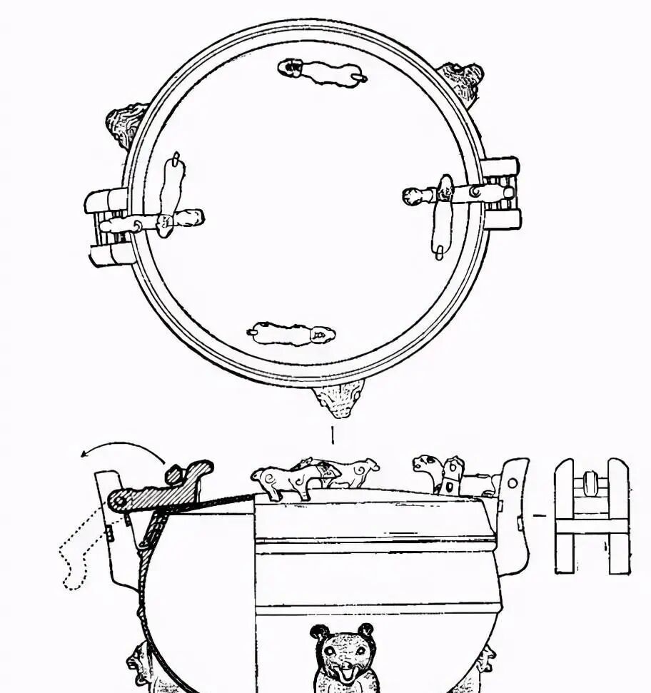 原来,使用时,人们只需将耳朵上的小兽掀开,然后合上盖子,把小兽翻过来扣在盖上,再旋动盖子。那伏兽的背就能卡在立兽颔下,这样锅和盖子就严丝合缝了。