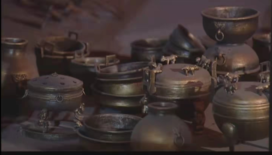 在众多青铜礼器中,人们发现了一件精美的青铜鼎。早在一万多年前,人们就发明了陶器,并很快用于烹饪。后来炊具有了精细分工,蒸食的叫“甑”,煮食的叫“鼎”