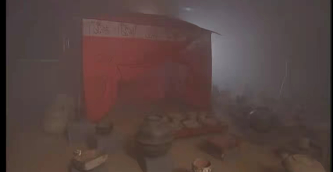 而后室的布局分为主侧两间,侧间放着洗澡用的大盆、装水的器具,应该代表的是浴室。主室又分为三个部分,南部摆放着铠甲和兵器,中部放着灯具、熏炉等生活用品,北部放的则是墓主人的棺椁。