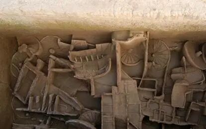 但因为岁月悠长,这看似是织物,但实际上与墓室的土壤融为一体,是一种特殊的印记。不过,经过重重的努力,最后,人们还是从两层淤土之间提取了总共10平方米的纺织品。