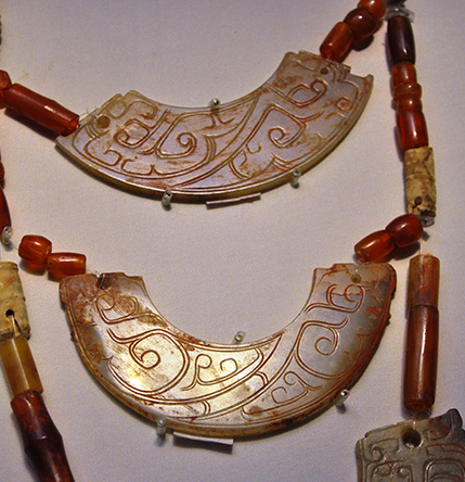 1号和2号墓葬的年代应为西周中期的穆王时期或略晚。面积都达到了30平方米,深度在15米左右,且带有25米左右的斜坡式墓道。一号墓中,有一位仰身平躺、嘴中含玉的女性长眠,她不仅随葬了5鼎5簋等共25件高等级的青铜器,身边还有项饰和玉组佩等玉器陪伴。