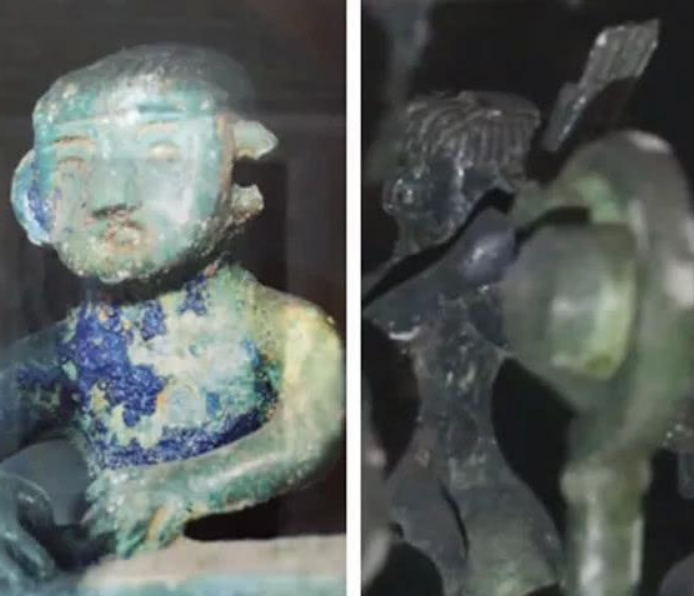 因为铸造技法精细,稍微观察,就能看到这几个乐人的样貌非常“杀马特”。