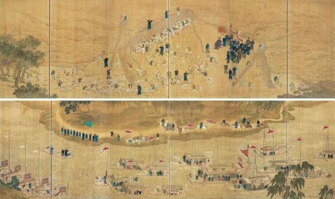 但康熙与淮河,也很有故事。康熙三次治理淮河,继位后的第二年,康熙就准了广西巡抚李绂、治水功臣齐苏勒的共同上书,拨付钱款对淮河治理;康熙二十七年,康熙在南巡过程中,巡视了淮河沿线的老盐仓、尖山等地力,下令修筑柴塘,并设竹篓、坦水诸工;康熙四十四年,康熙再次巡视淮河……如今,还有一幅反映清代皇帝治理淮河的内容的《淮河巡幸图》传世。
