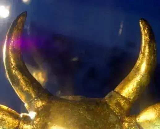 真是眼前一亮!原来,土层之中竟然露出了一头金灿灿的大牛!