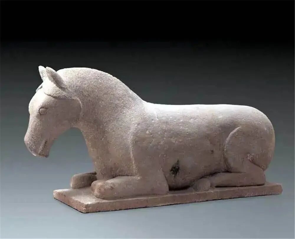 在鎏金铜牛的一旁,还发现了一件大石马,这匹马长130厘米、宽38厘米、高70厘米、重355公斤,是用一整块白砂石采用通体圆雕的手法雕成的,马头稍垂,颈部弯曲,比例匀称,马鬃整齐流畅地披散在脖子上,线条舒展,非常真实、生动。