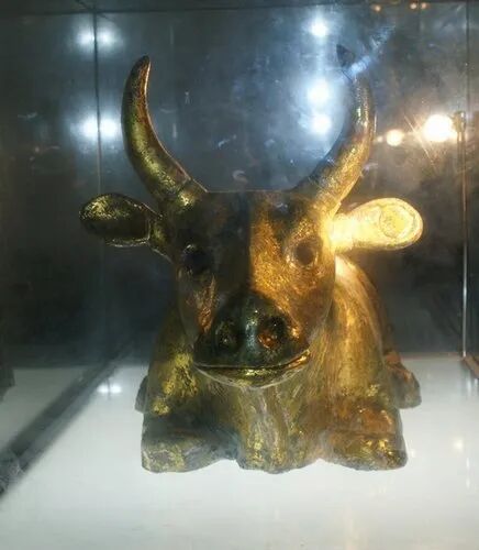 后来,经鉴定,这金牛实际上是一尊鎏金铜牛,这铜牛全长1.2米,重188公斤,铜铸空心,外表鎏金,全身散发着柔和的金光,造型非常生动。最绝的是,这牛颈部的肌肉线条非常清晰,皮肤下面有一根脊椎骨,从颈部延伸到尾部,既写实又优美,真是一件难得的珍品。