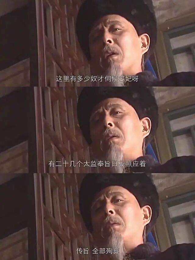 容妃死后,皇帝来到她的棺前,问下人:这里有多少奴才伺候容妃啊?下人回答:有二十多个太监奉旨日夜照应着。皇帝毫不犹豫地说:传旨,全部殉葬!