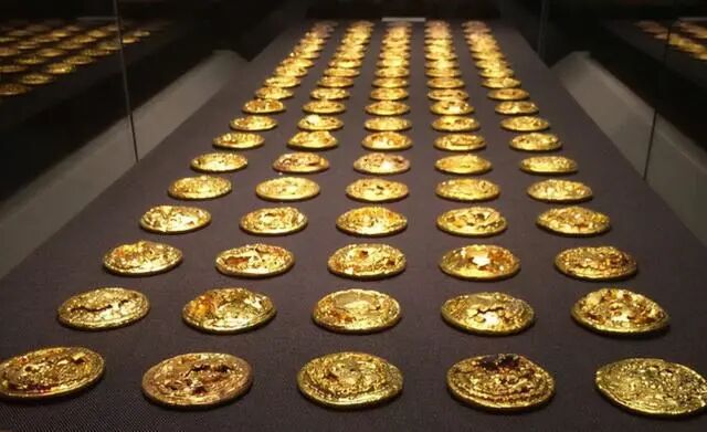 不仅如此,刘贺还为自己铺上了一张包金丝缕琉璃席,如今看来,琉璃类似于“玻璃”,但在古代,这却是“宝石一列”。不仅如此,刘贺干脆又在自己的席子之下摆满了金饼,这样铺金盖银玉躺在珍宝满坑满谷的墓室里,也算是保存了自己最大的体面了。