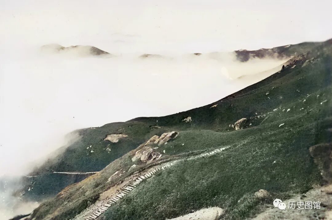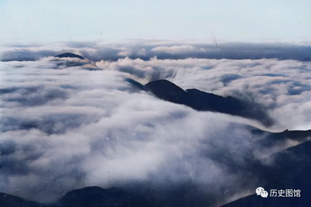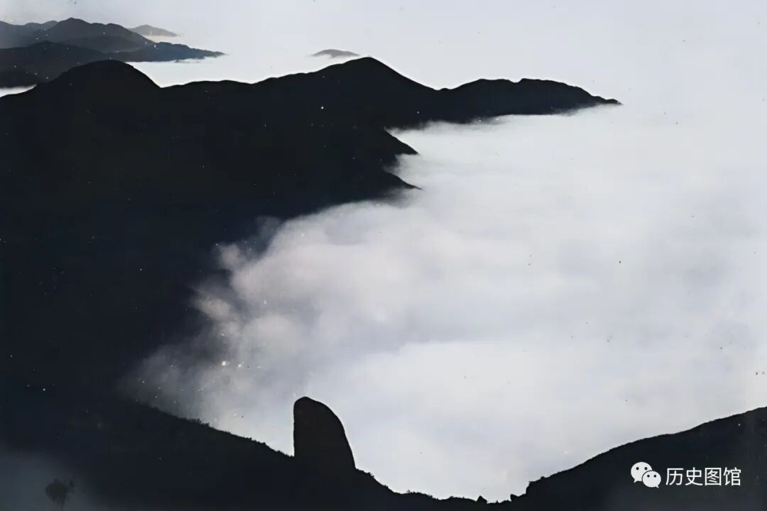 站在高处俯瞰缥缈的衡山云海,白色的云雾慢慢涌动升腾,山峰在云雾间时隐时现,犹如走进了天宫。照片拍摄于1930年。