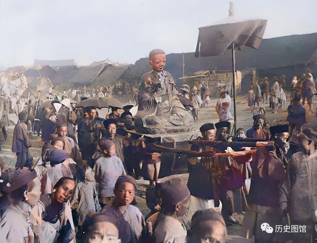 云南腾冲当地人正在举行一次集体活动。街面上,有几名身穿制服的衙役抬着一尊巨大的泥塑佛像,旁边还有人撑着华盖。跟在他们后面的队伍浩浩荡荡,街上到处是看热闹的人。