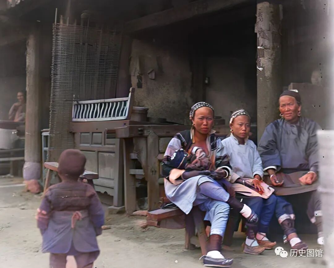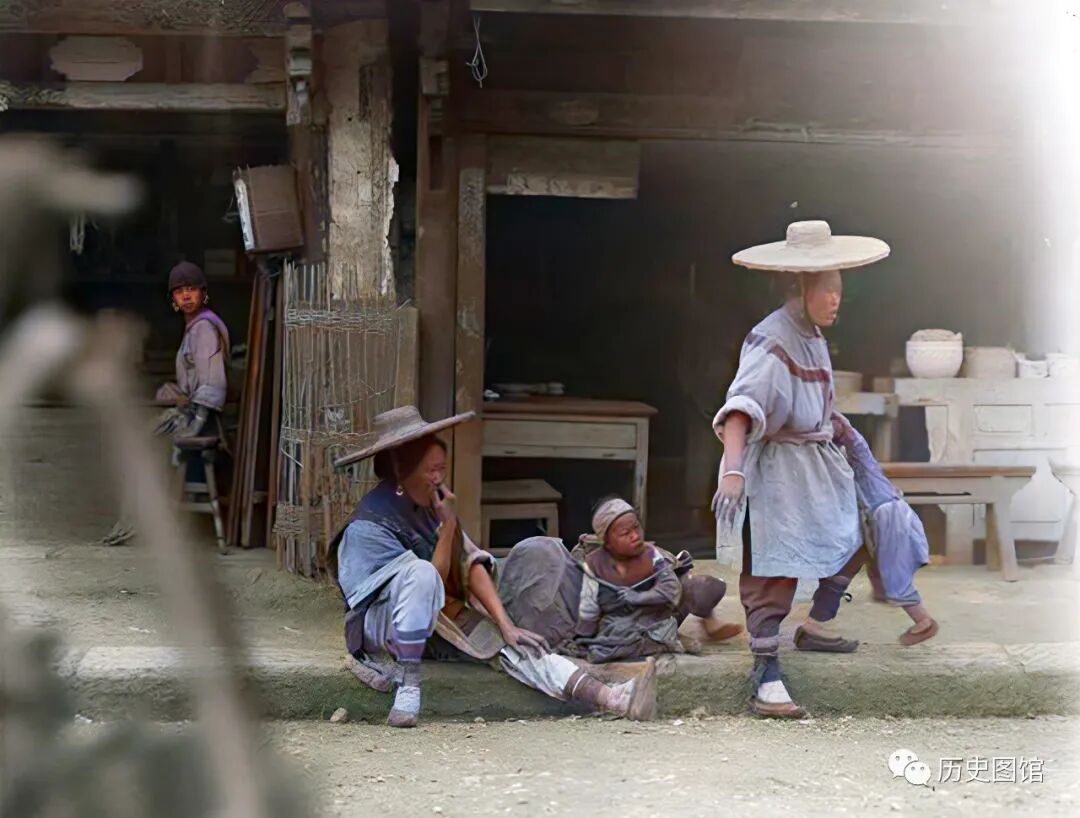 在她们身后,好像是一个茶水铺。从她们身上穿着的传统的民族服装砍,你能猜出她们是哪个民族的吗?