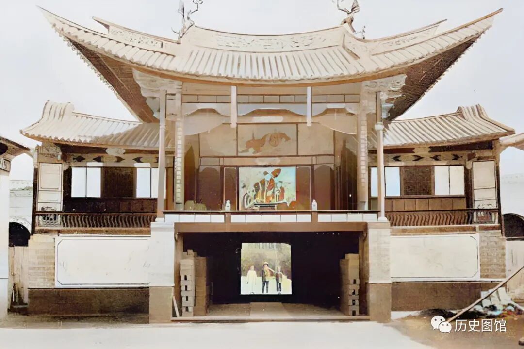 这是云南腾冲财神庙山门,山门背面是一座戏楼。财神庙始建于明代,后被焚毁。清光绪二十四年(1898年)复建。1911年,改为西军都督府。此照片为美国人盖洛拍摄。