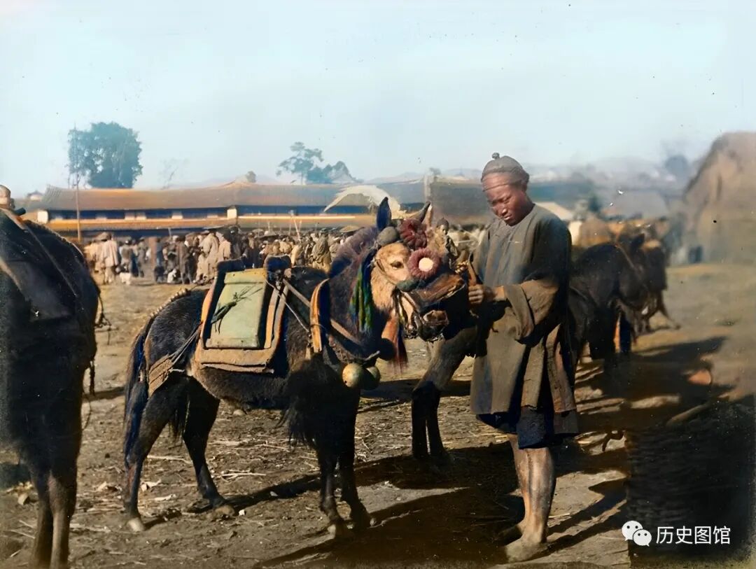 1917年,云南腾冲一个驿站外。一名车夫正在整理自己的马匹。因为太珍爱自己的马匹,他除了在马身上装有舒适的马鞍外,还挂了很多漂亮的装饰物。