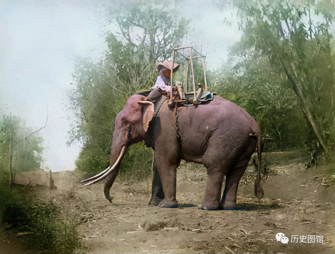 腾冲一个竹林里,有一头身材威猛的亚洲象。驯象师是一名少年,他头戴着帽子坐在大象的背上,手里牵着大象身上的铁链。在过去,被驯服的亚洲象主要用于林业,大象能轻松搬运笨重的木材。