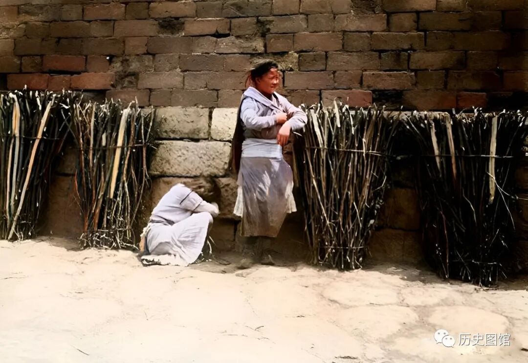 1917年,云南腾冲城墙边上,一位小哥哥带着妹妹在卖干柴。他们把从山上砍下的干柴扎成捆,开在城墙上卖。
